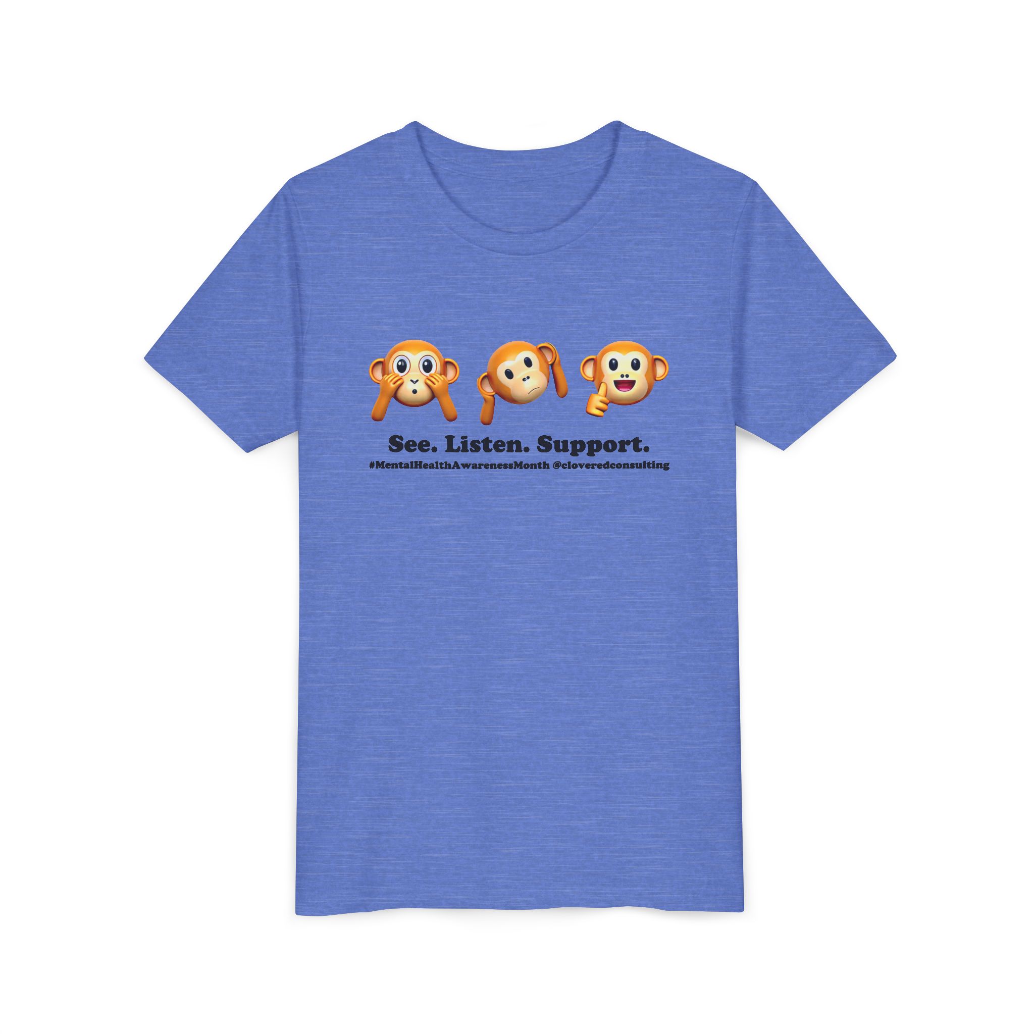 Be the first to review “Youth MH Awareness Tee – See. Listen. Support.”